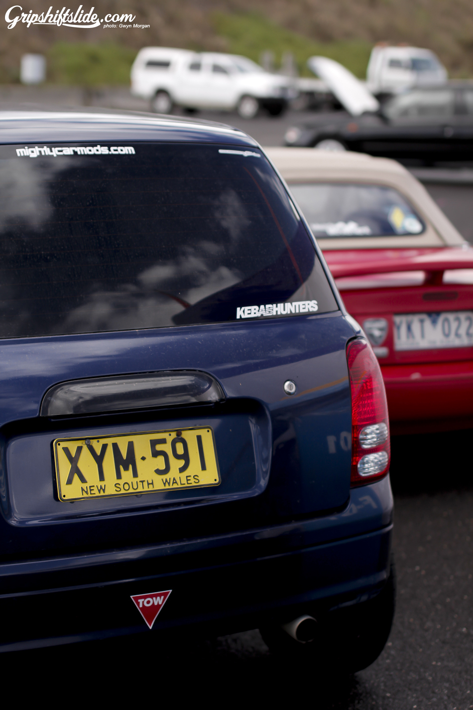 The Mighty Car Mods “Blue Turd” still wearing some mud from the gymkhana session the day before.
